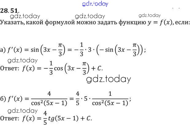 Ответы к §28. Вычисление производных Глава 5 28.51 Задачнику по Алгебре для 10-11 класса Мордкович, Денищева Базовый уровень Мнемозина 2015
