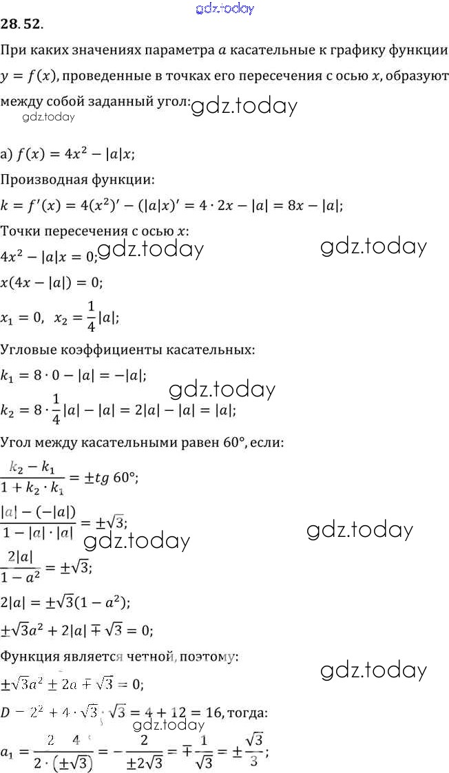 Ответы к §28. Вычисление производных Глава 5 28.52 Задачнику по Алгебре для 10-11 класса Мордкович, Денищева Базовый уровень Мнемозина 2015