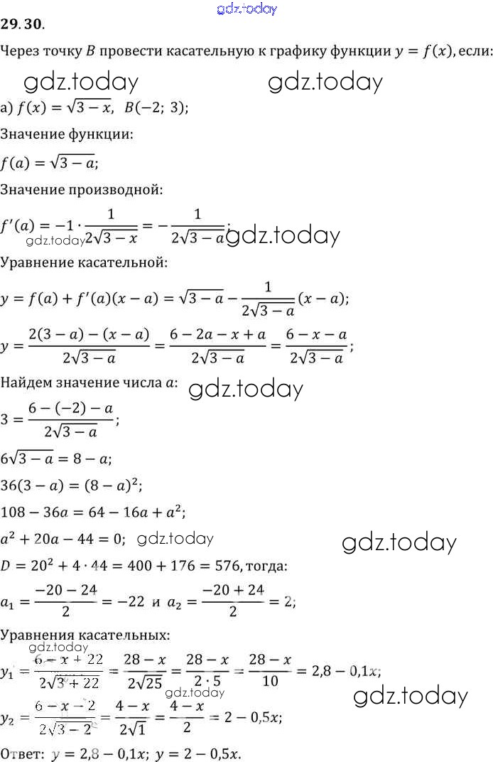 Ответы к §29. Уравнение касательной к графику функции Глава 5 29.30 Задачнику по Алгебре для 10-11 класса Мордкович, Денищева Базовый уровень Мнемозина 2015