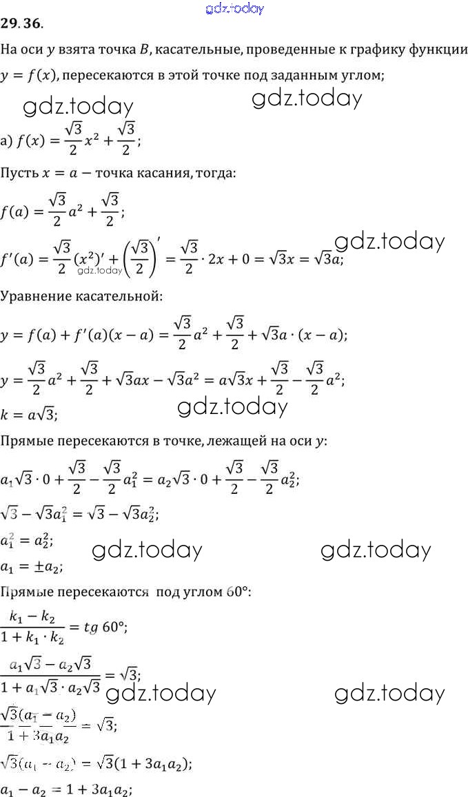 Ответы к §29. Уравнение касательной к графику функции Глава 5 29.36 Задачнику по Алгебре для 10-11 класса Мордкович, Денищева Базовый уровень Мнемозина 2015