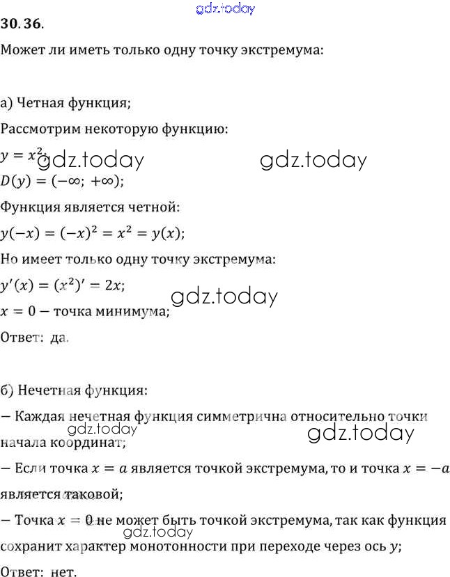 Ответы к §30. Применение производной для исследования функций на монотонность и экстремумы Глава 5 30.36 Задачнику по Алгебре для 10-11 класса Мордкович, Денищева Базовый уровень Мнемозина 2015