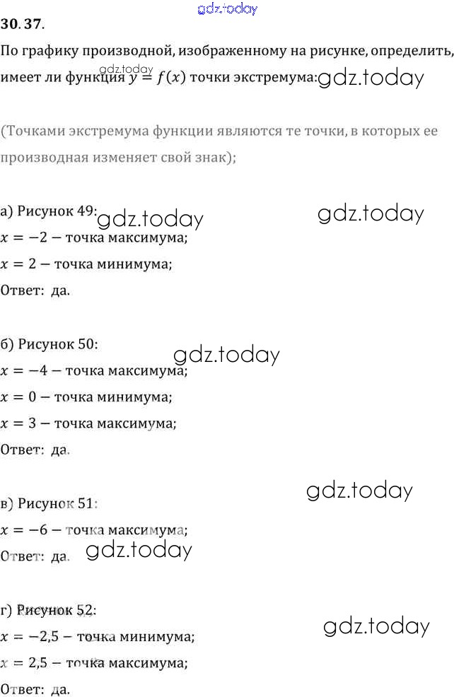 Ответы к §30. Применение производной для исследования функций на монотонность и экстремумы Глава 5 30.37 Задачнику по Алгебре для 10-11 класса Мордкович, Денищева Базовый уровень Мнемозина 2015