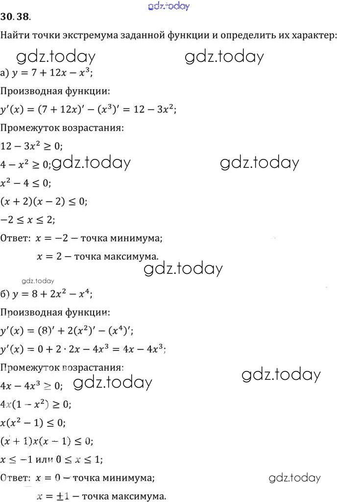 Ответы к §30. Применение производной для исследования функций на монотонность и экстремумы Глава 5 30.38 Задачнику по Алгебре для 10-11 класса Мордкович, Денищева Базовый уровень Мнемозина 2015