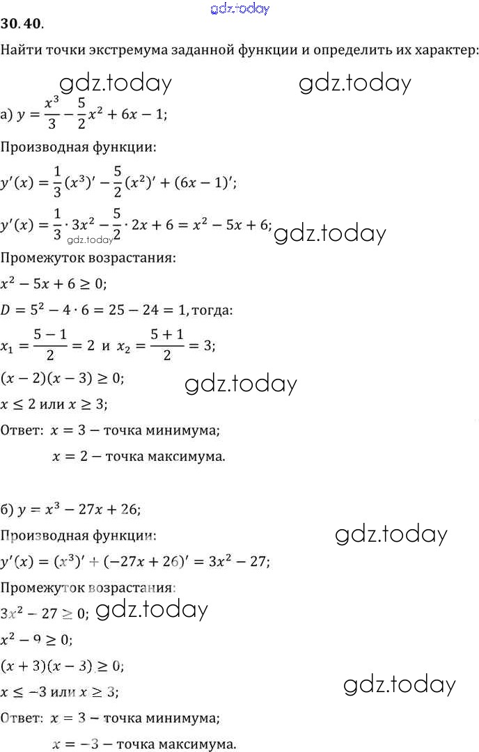 Ответы к §30. Применение производной для исследования функций на монотонность и экстремумы Глава 5 30.40 Задачнику по Алгебре для 10-11 класса Мордкович, Денищева Базовый уровень Мнемозина 2015
