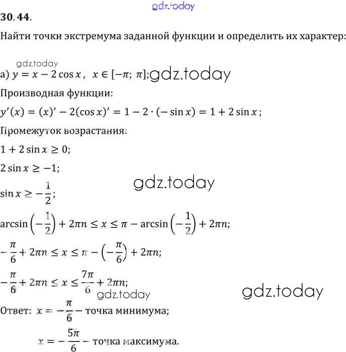 Ответы к §30. Применение производной для исследования функций на монотонность и экстремумы Глава 5 30.44 Задачнику по Алгебре для 10-11 класса Мордкович, Денищева Базовый уровень Мнемозина 2015