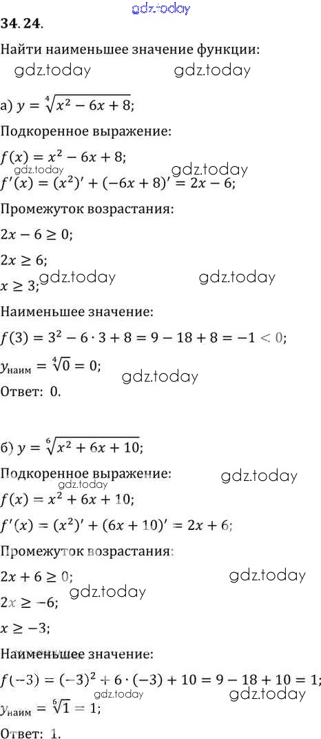 Ответы к §34. Функции y = ⁿ√x, их свойства и графики Глава 6 34. 24 Задачнику по Алгебре для 10-11 класса Мордкович, Денищева Базовый уровень Мнемозина 2015