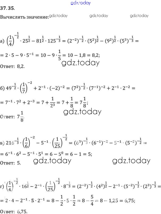 На страницах сайта gdz.today вы найдете учебный и вспомогательный материал, направленный на улучшения знаний школьной программы. ГДЗ - онлайн мир знаний §37. Обобщение понятия о показателе степени Глава 6 37.35 Задачнику по Алгебре для 10-11 класса Мордкович, Денищева Базовый уровень Мнемозина 2015