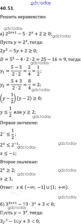 Ответы к §40. Показательные уравнения и неравенства Глава 7 40. 51 Задачнику по Алгебре для 10-11 класса Мордкович, Денищева Базовый уровень Мнемозина 2015
