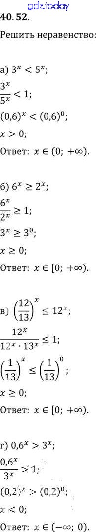 Ответы к §40. Показательные уравнения и неравенства Глава 7 40. 52 Задачнику по Алгебре для 10-11 класса Мордкович, Денищева Базовый уровень Мнемозина 2015
