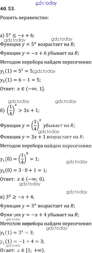 Ответы к §40. Показательные уравнения и неравенства Глава 7 40. 53 Задачнику по Алгебре для 10-11 класса Мордкович, Денищева Базовый уровень Мнемозина 2015