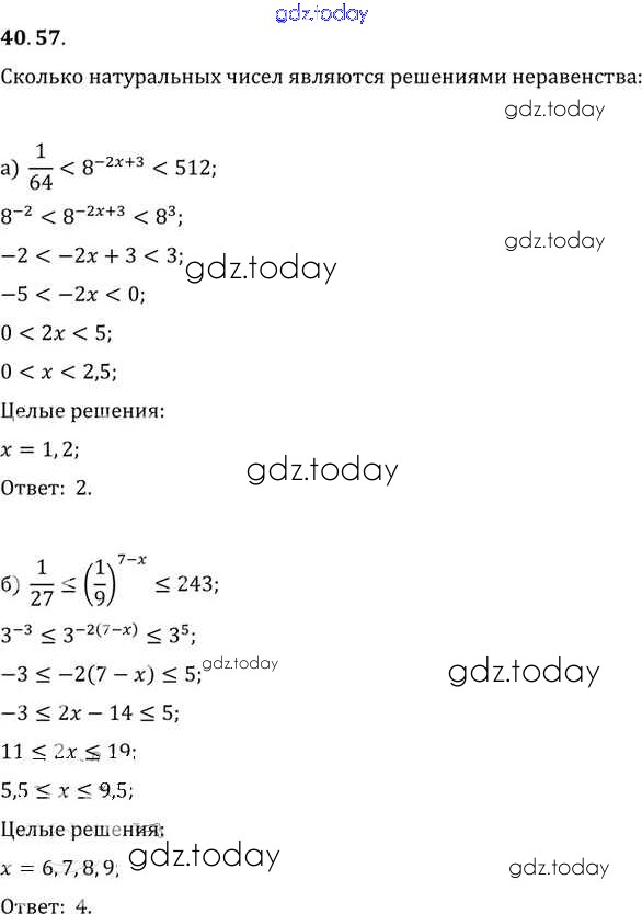Ответы к §40. Показательные уравнения и неравенства Глава 7 40. 57 Задачнику по Алгебре для 10-11 класса Мордкович, Денищева Базовый уровень Мнемозина 2015