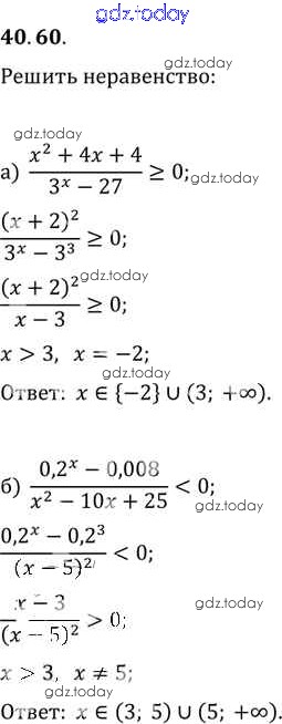 Ответы к §40. Показательные уравнения и неравенства Глава 7 40. 60 Задачнику по Алгебре для 10-11 класса Мордкович, Денищева Базовый уровень Мнемозина 2015