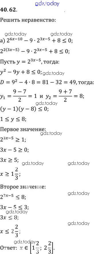 Ответы к §40. Показательные уравнения и неравенства Глава 7 40. 62 Задачнику по Алгебре для 10-11 класса Мордкович, Денищева Базовый уровень Мнемозина 2015
