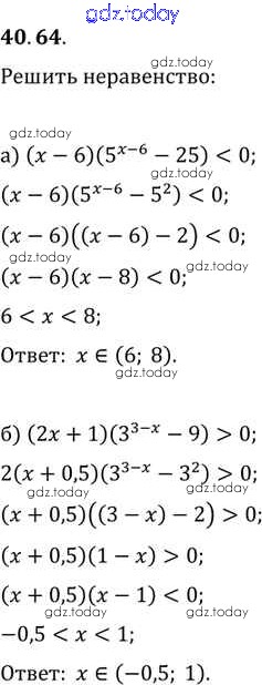 Ответы к §40. Показательные уравнения и неравенства Глава 7 40. 64 Задачнику по Алгебре для 10-11 класса Мордкович, Денищева Базовый уровень Мнемозина 2015