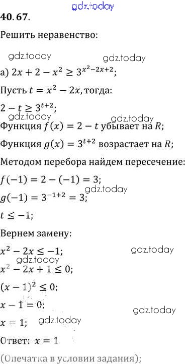 Ответы к §40. Показательные уравнения и неравенства Глава 7 40. 67 Задачнику по Алгебре для 10-11 класса Мордкович, Денищева Базовый уровень Мнемозина 2015
