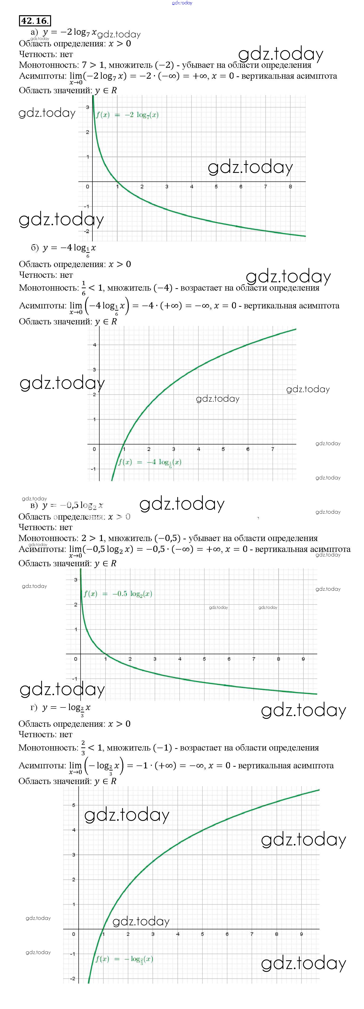 На страницах сайта gdz.today вы найдете учебный и вспомогательный материал, направленный на улучшения знаний школьной программы. ГДЗ - онлайн мир знаний §42. Функция y = loga x, ее свойства и график Глава 7 42. 16 Задачнику по Алгебре для 10-11 класса Мордкович, Денищева Базовый уровень Мнемозина 2015