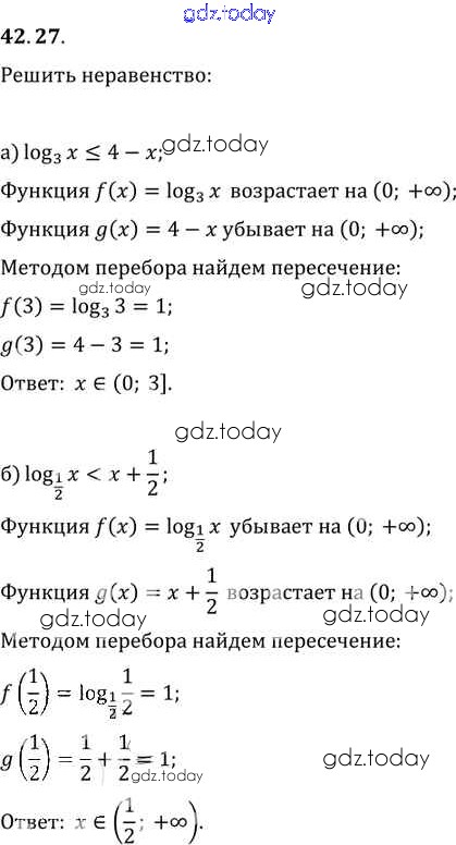 Ответы к §42. Функция y = loga x, ее свойства и график Глава 7 42. 27 Задачнику по Алгебре для 10-11 класса Мордкович, Денищева Базовый уровень Мнемозина 2015