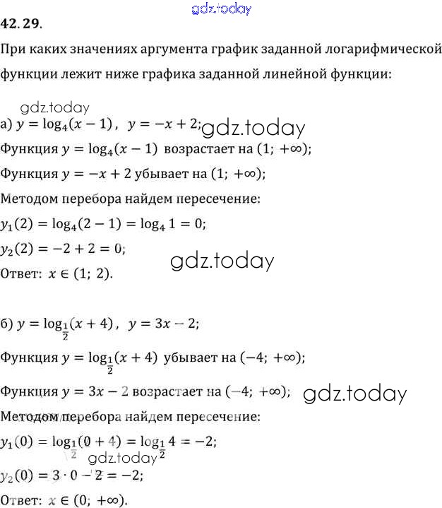 Ответы к §42. Функция y = loga x, ее свойства и график Глава 7 42. 29 Задачнику по Алгебре для 10-11 класса Мордкович, Денищева Базовый уровень Мнемозина 2015