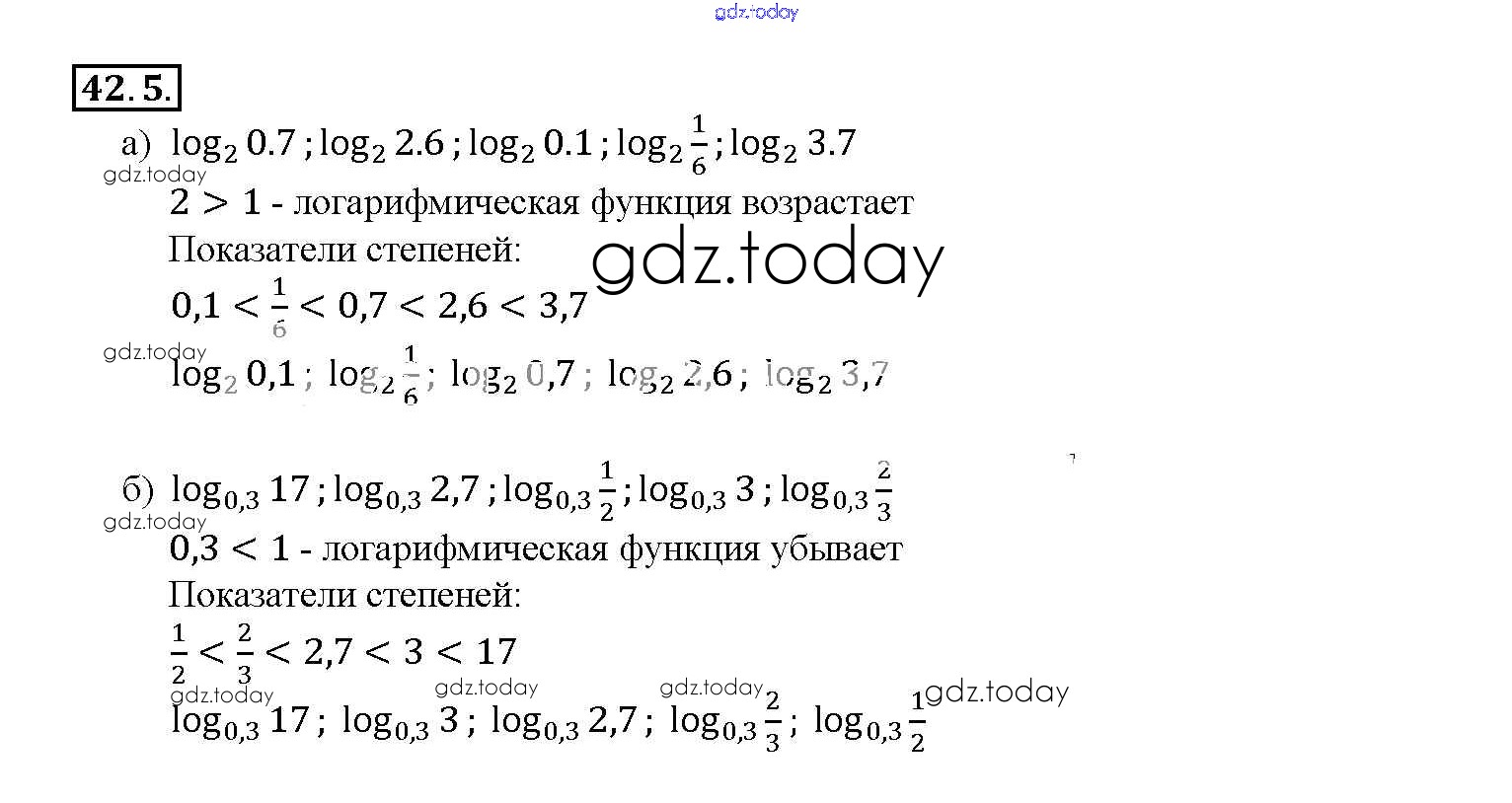 На страницах сайта gdz.today вы найдете учебный и вспомогательный материал, направленный на улучшения знаний школьной программы. ГДЗ - онлайн мир знаний §42. Функция y = loga x, ее свойства и график Глава 7 42. 5 Задачнику по Алгебре для 10-11 класса Мордкович, Денищева Базовый уровень Мнемозина 2015