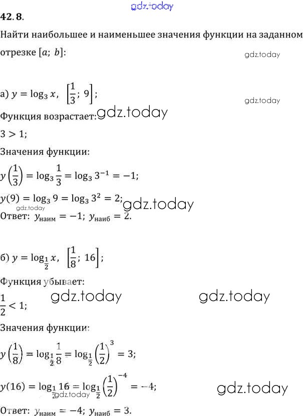 Ответы к §42. Функция y = loga x, ее свойства и график Глава 7 42. 8 Задачнику по Алгебре для 10-11 класса Мордкович, Денищева Базовый уровень Мнемозина 2015