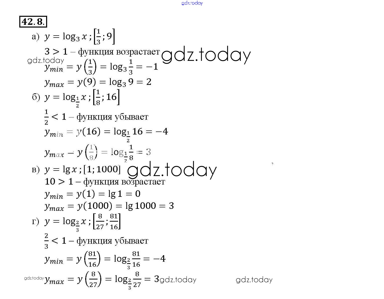 На страницах сайта gdz.today вы найдете учебный и вспомогательный материал, направленный на улучшения знаний школьной программы. ГДЗ - онлайн мир знаний §42. Функция y = loga x, ее свойства и график Глава 7 42. 8 Задачнику по Алгебре для 10-11 класса Мордкович, Денищева Базовый уровень Мнемозина 2015