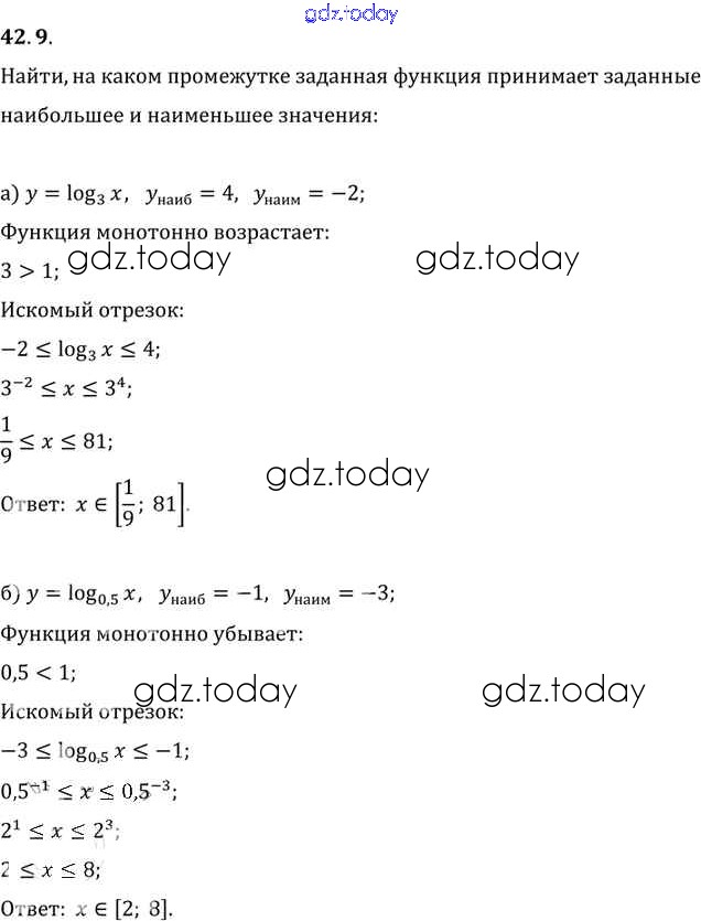 Ответы к §42. Функция y = loga x, ее свойства и график Глава 7 42. 9 Задачнику по Алгебре для 10-11 класса Мордкович, Денищева Базовый уровень Мнемозина 2015