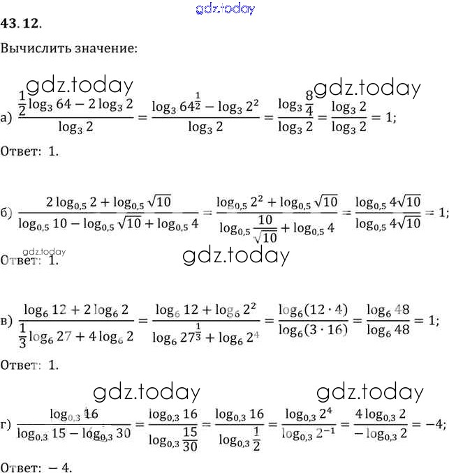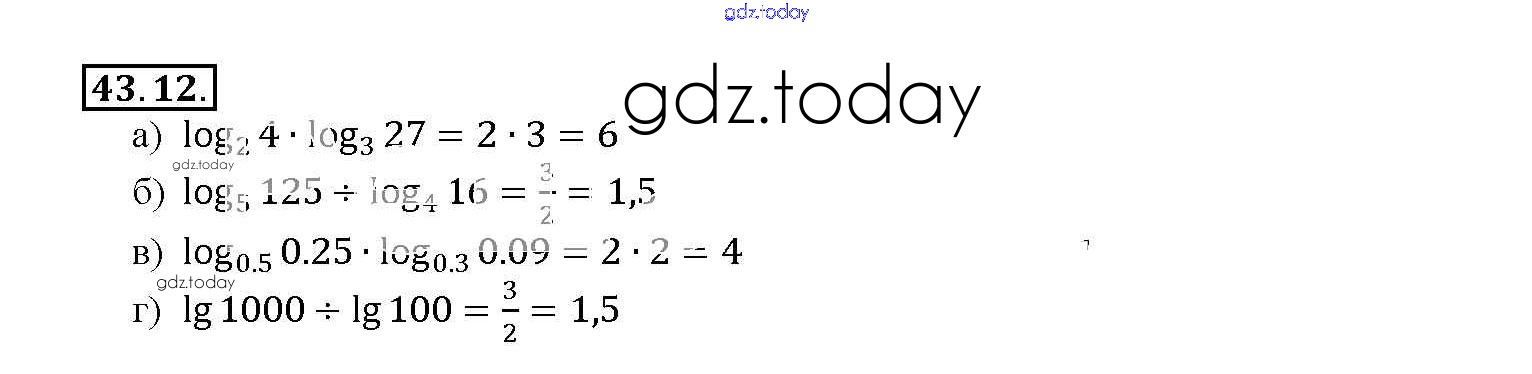 На страницах сайта gdz.today вы найдете учебный и вспомогательный материал, направленный на улучшения знаний школьной программы. ГДЗ - онлайн мир знаний §43. Свойства логарифмов Глава 7 43. 12 Задачнику по Алгебре для 10-11 класса Мордкович, Денищева Базовый уровень Мнемозина 2015