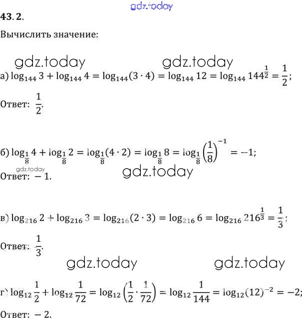 На страницах сайта gdz.today вы найдете учебный и вспомогательный материал, направленный на улучшения знаний школьной программы. ГДЗ - онлайн мир знаний §43. Свойства логарифмов Глава 7 43. 2 Задачнику по Алгебре для 10-11 класса Мордкович, Денищева Базовый уровень Мнемозина 2015