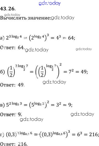Ответы к §43. Свойства логарифмов Глава 7 43. 26 Задачнику по Алгебре для 10-11 класса Мордкович, Денищева Базовый уровень Мнемозина 2015