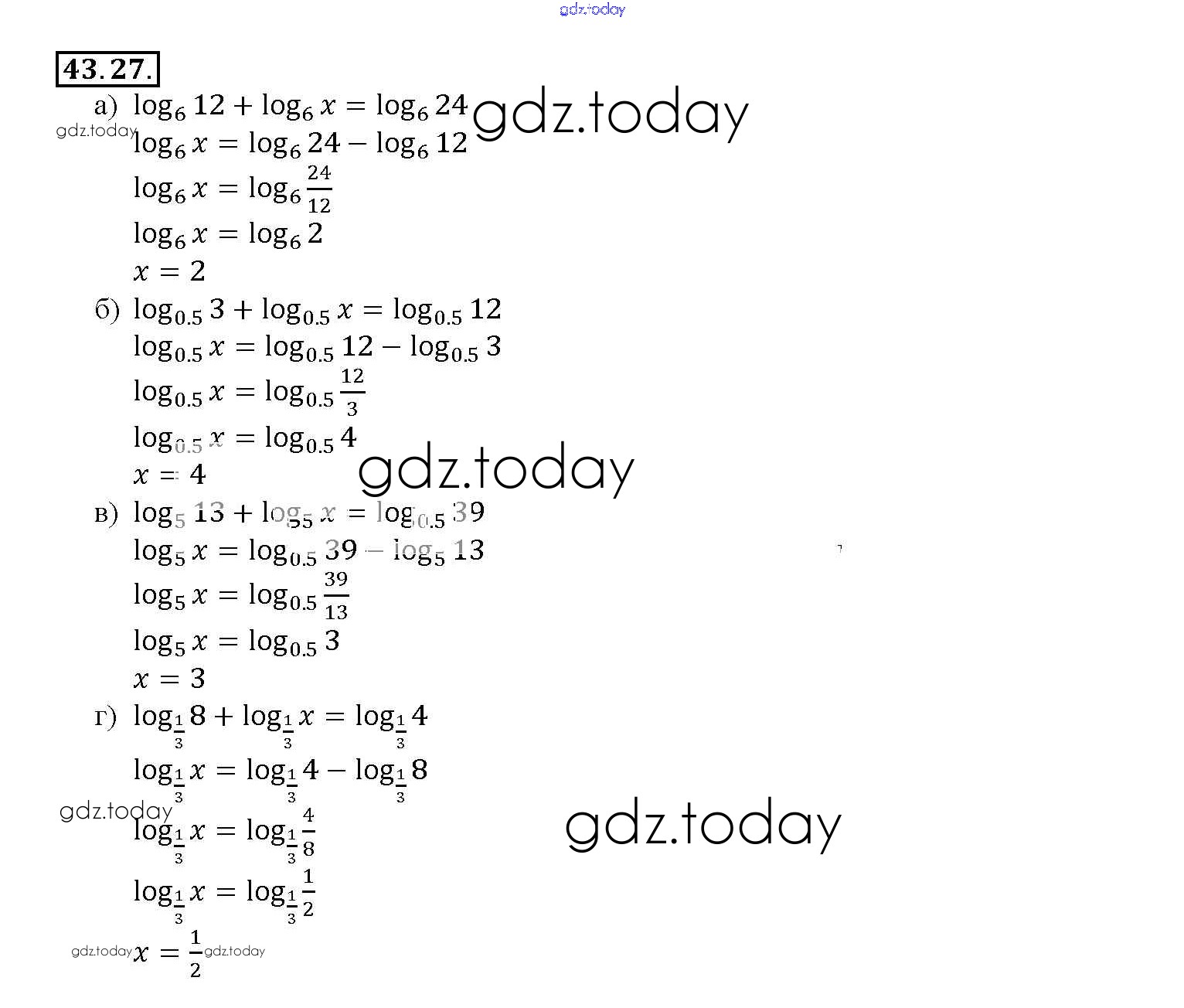 На страницах сайта gdz.today вы найдете учебный и вспомогательный материал, направленный на улучшения знаний школьной программы. ГДЗ - онлайн мир знаний §43. Свойства логарифмов Глава 7 43. 27 Задачнику по Алгебре для 10-11 класса Мордкович, Денищева Базовый уровень Мнемозина 2015