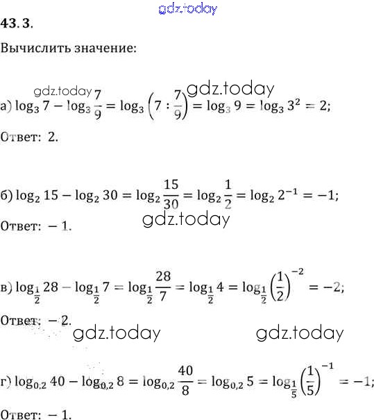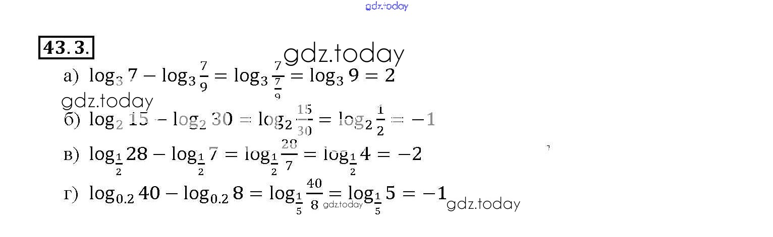 На страницах сайта gdz.today вы найдете учебный и вспомогательный материал, направленный на улучшения знаний школьной программы. ГДЗ - онлайн мир знаний §43. Свойства логарифмов Глава 7 43. 3 Задачнику по Алгебре для 10-11 класса Мордкович, Денищева Базовый уровень Мнемозина 2015