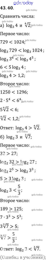 Ответы к §43. Свойства логарифмов Глава 7 43. 40 Задачнику по Алгебре для 10-11 класса Мордкович, Денищева Базовый уровень Мнемозина 2015