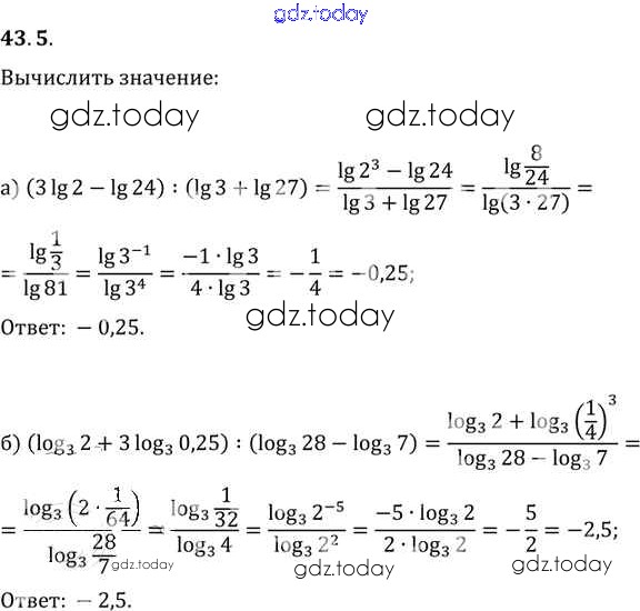 На страницах сайта gdz.today вы найдете учебный и вспомогательный материал, направленный на улучшения знаний школьной программы. ГДЗ - онлайн мир знаний §43. Свойства логарифмов Глава 7 43. 5 Задачнику по Алгебре для 10-11 класса Мордкович, Денищева Базовый уровень Мнемозина 2015