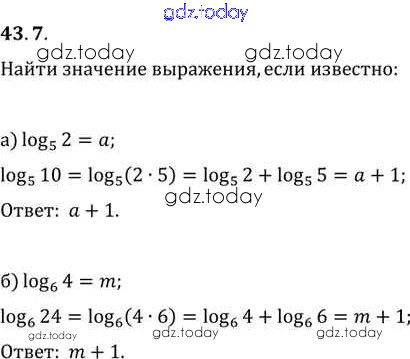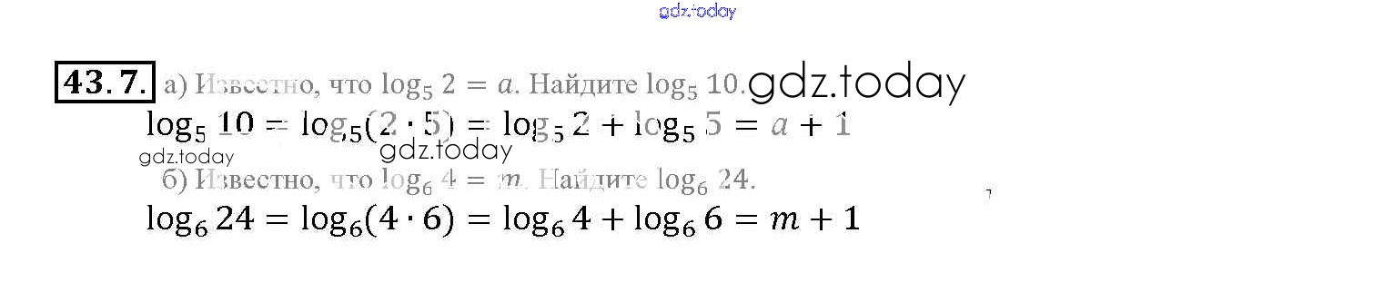 На страницах сайта gdz.today вы найдете учебный и вспомогательный материал, направленный на улучшения знаний школьной программы. ГДЗ - онлайн мир знаний §43. Свойства логарифмов Глава 7 43. 7 Задачнику по Алгебре для 10-11 класса Мордкович, Денищева Базовый уровень Мнемозина 2015
