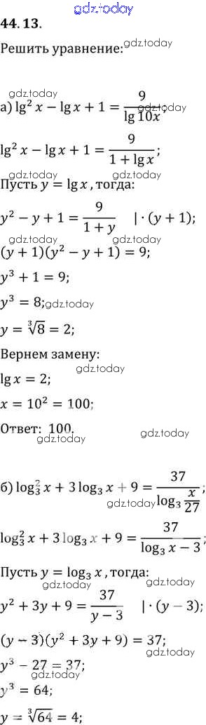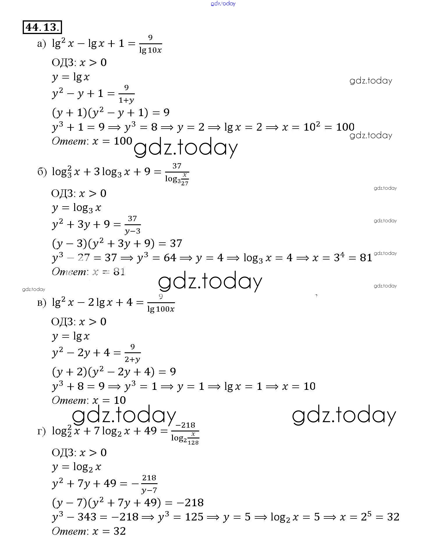 На страницах сайта gdz.today вы найдете учебный и вспомогательный материал, направленный на улучшения знаний школьной программы. ГДЗ - онлайн мир знаний §44. Логарифмические уравнения Глава 7 44. 13 Задачнику по Алгебре для 10-11 класса Мордкович, Денищева Базовый уровень Мнемозина 2015