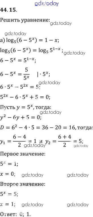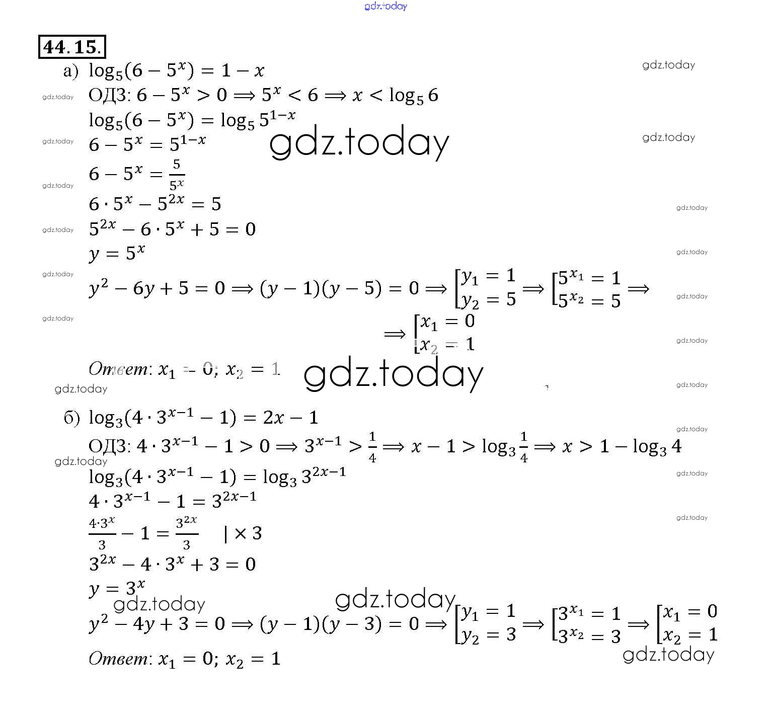 На страницах сайта gdz.today вы найдете учебный и вспомогательный материал, направленный на улучшения знаний школьной программы. ГДЗ - онлайн мир знаний §44. Логарифмические уравнения Глава 7 44. 15 Задачнику по Алгебре для 10-11 класса Мордкович, Денищева Базовый уровень Мнемозина 2015