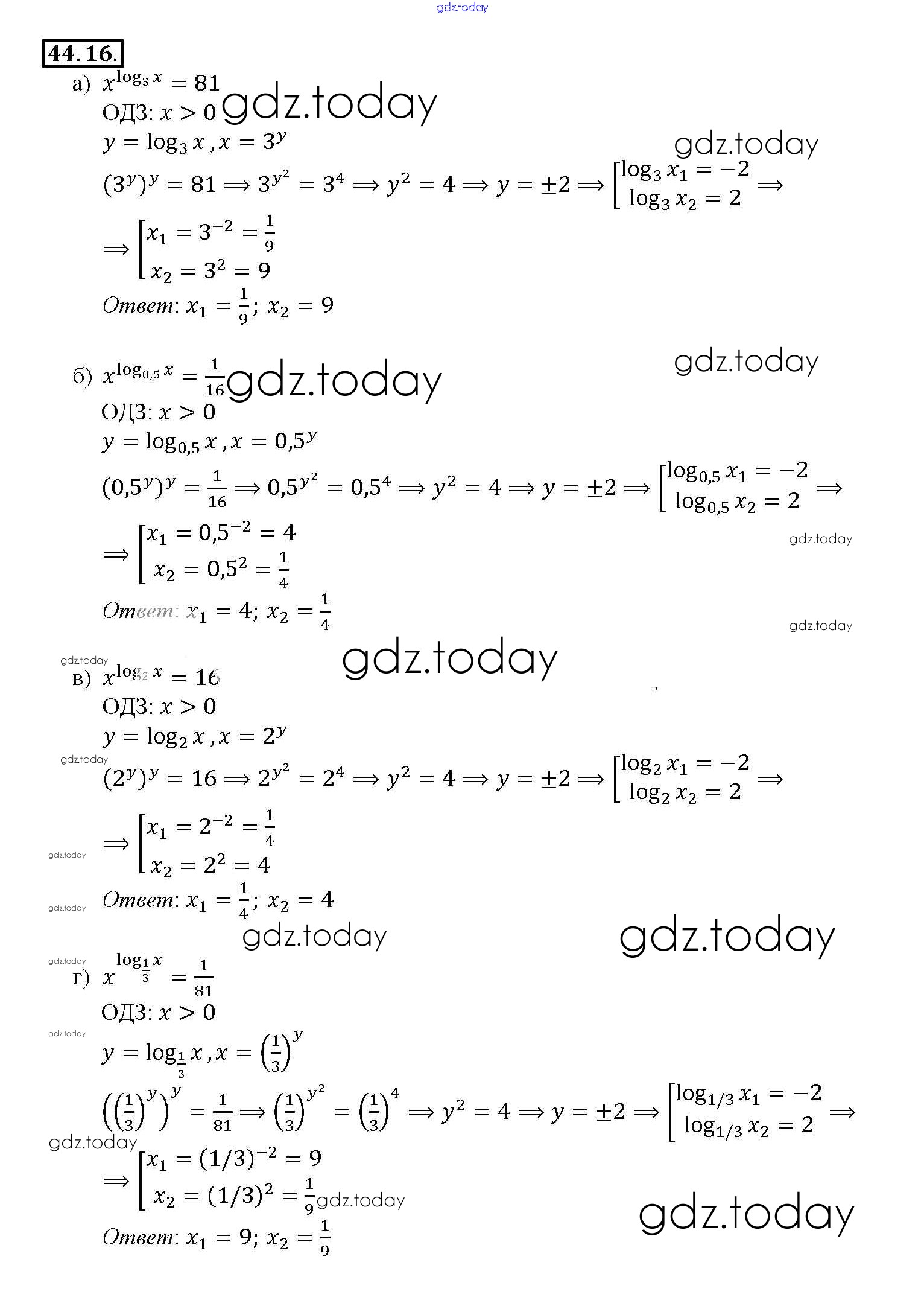 На страницах сайта gdz.today вы найдете учебный и вспомогательный материал, направленный на улучшения знаний школьной программы. ГДЗ - онлайн мир знаний §44. Логарифмические уравнения Глава 7 44. 16 Задачнику по Алгебре для 10-11 класса Мордкович, Денищева Базовый уровень Мнемозина 2015