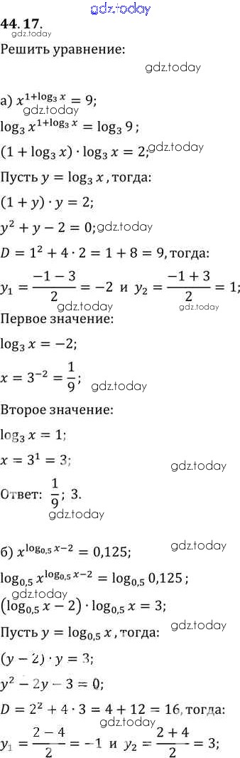 Ответы к §44. Логарифмические уравнения Глава 7 44. 17 Задачнику по Алгебре для 10-11 класса Мордкович, Денищева Базовый уровень Мнемозина 2015