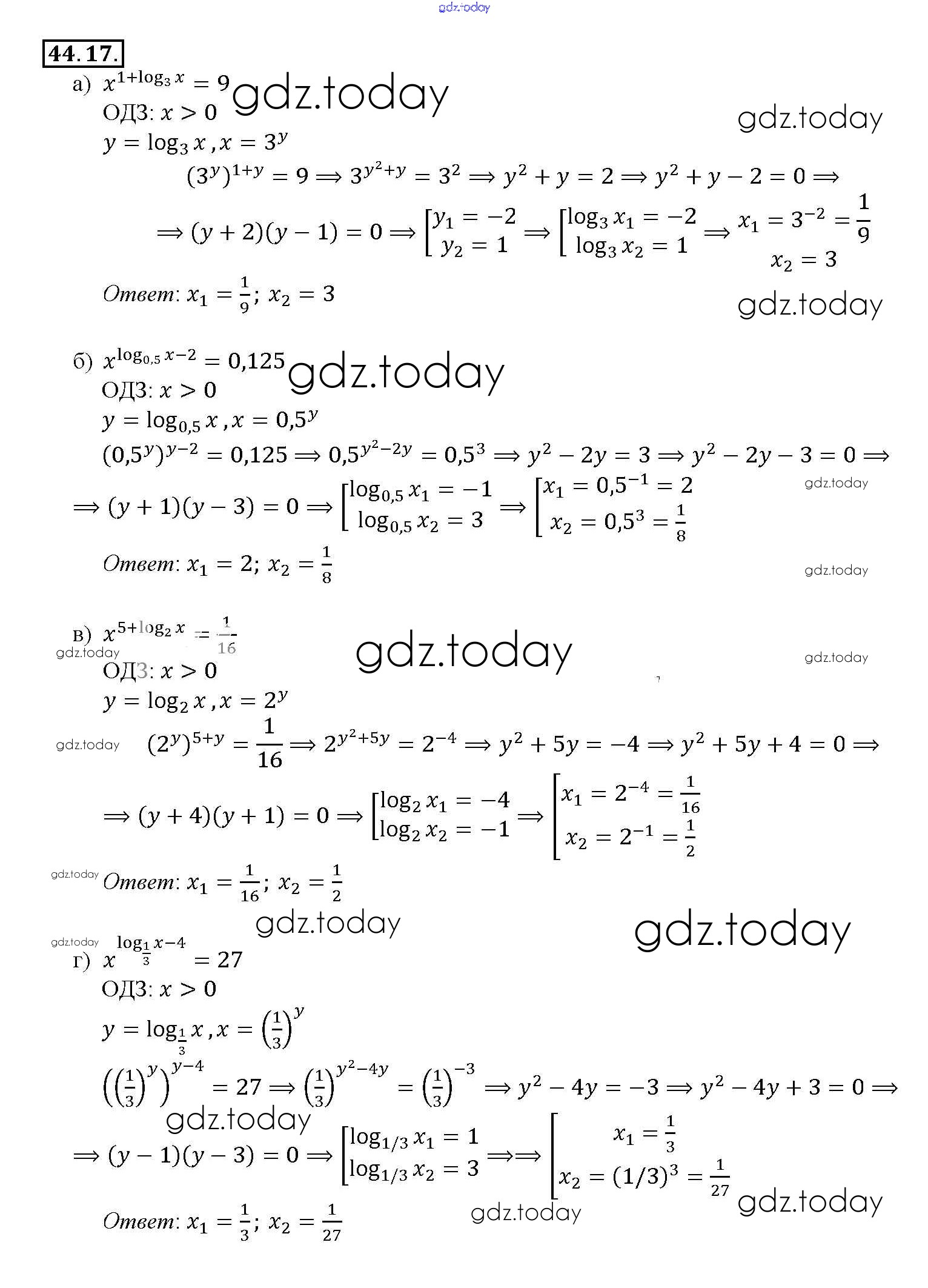 На страницах сайта gdz.today вы найдете учебный и вспомогательный материал, направленный на улучшения знаний школьной программы. ГДЗ - онлайн мир знаний §44. Логарифмические уравнения Глава 7 44. 17 Задачнику по Алгебре для 10-11 класса Мордкович, Денищева Базовый уровень Мнемозина 2015