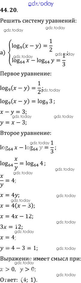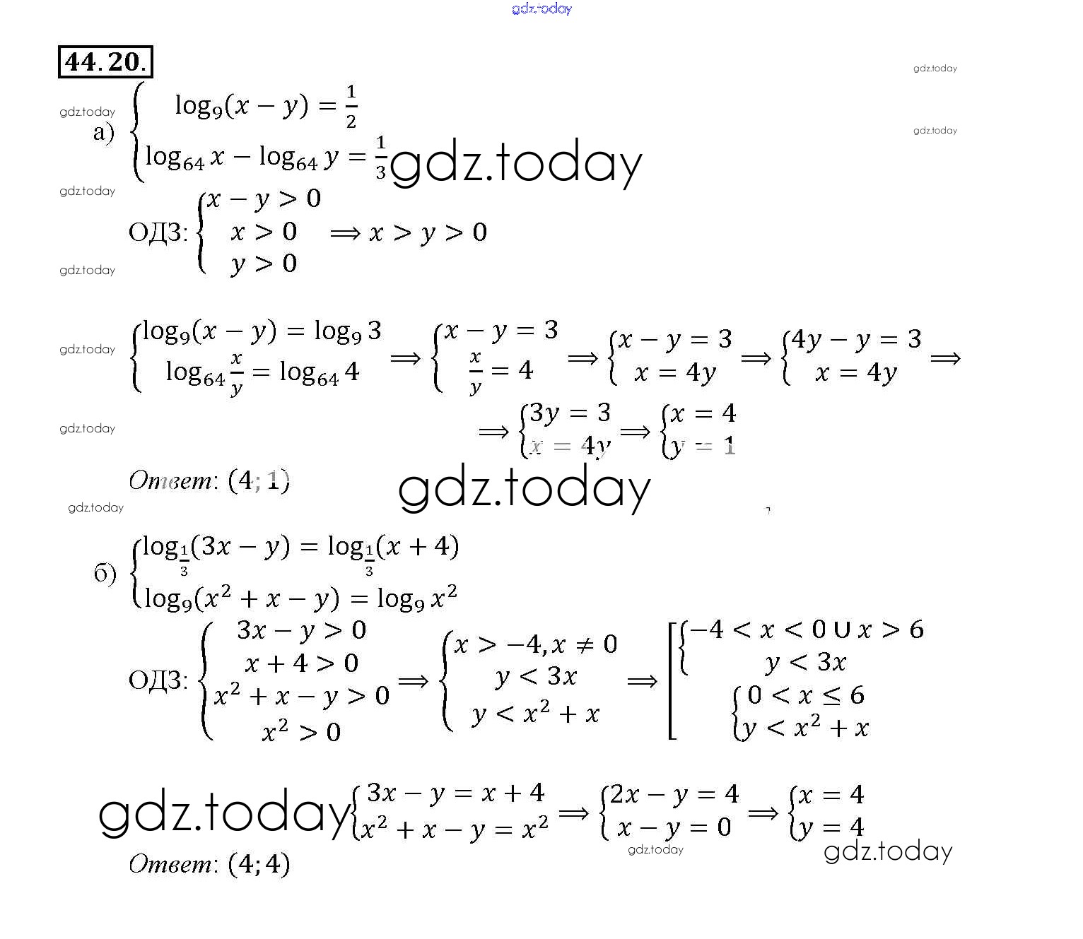 На страницах сайта gdz.today вы найдете учебный и вспомогательный материал, направленный на улучшения знаний школьной программы. ГДЗ - онлайн мир знаний §44. Логарифмические уравнения Глава 7 44. 20 Задачнику по Алгебре для 10-11 класса Мордкович, Денищева Базовый уровень Мнемозина 2015