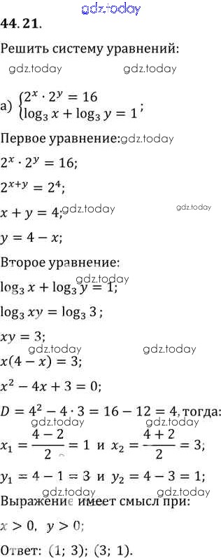 На страницах сайта gdz.today вы найдете учебный и вспомогательный материал, направленный на улучшения знаний школьной программы. ГДЗ - онлайн мир знаний §44. Логарифмические уравнения Глава 7 44. 21 Задачнику по Алгебре для 10-11 класса Мордкович, Денищева Базовый уровень Мнемозина 2015