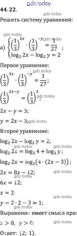 На страницах сайта gdz.today вы найдете учебный и вспомогательный материал, направленный на улучшения знаний школьной программы. ГДЗ - онлайн мир знаний §44. Логарифмические уравнения Глава 7 44. 22 Задачнику по Алгебре для 10-11 класса Мордкович, Денищева Базовый уровень Мнемозина 2015
