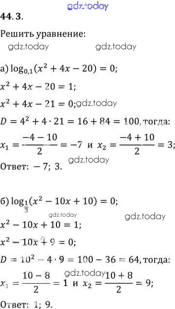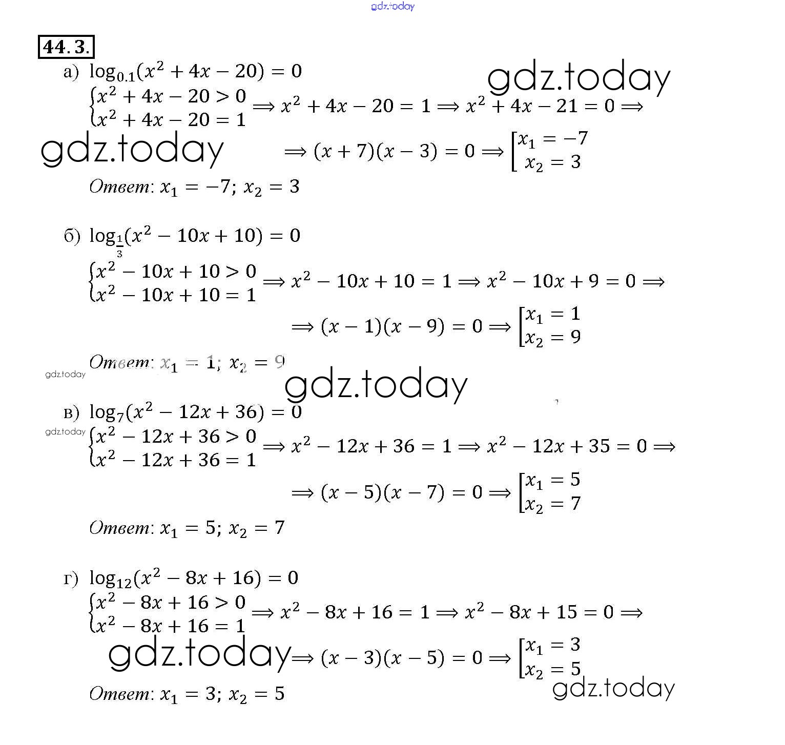 На страницах сайта gdz.today вы найдете учебный и вспомогательный материал, направленный на улучшения знаний школьной программы. ГДЗ - онлайн мир знаний §44. Логарифмические уравнения Глава 7 44. 3 Задачнику по Алгебре для 10-11 класса Мордкович, Денищева Базовый уровень Мнемозина 2015
