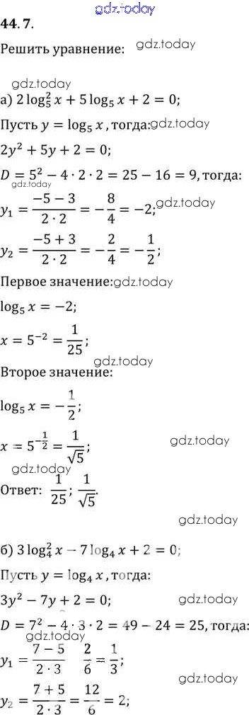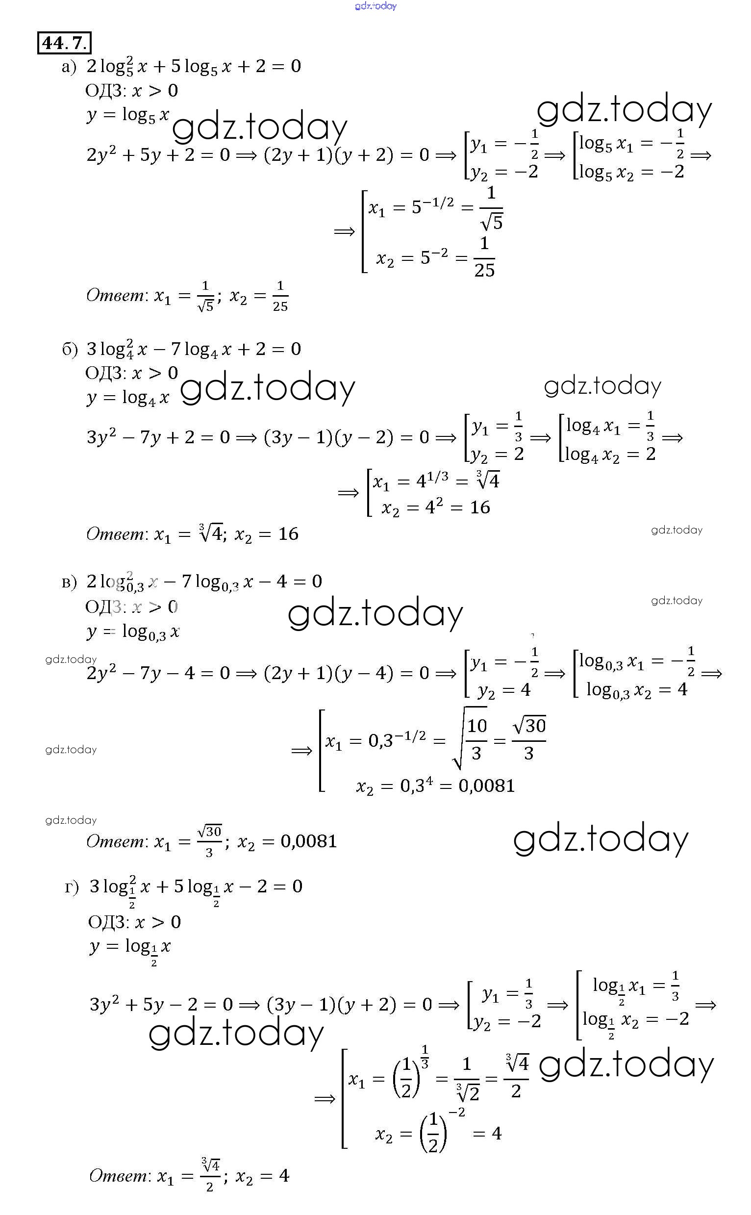 На страницах сайта gdz.today вы найдете учебный и вспомогательный материал, направленный на улучшения знаний школьной программы. ГДЗ - онлайн мир знаний §44. Логарифмические уравнения Глава 7 44. 7 Задачнику по Алгебре для 10-11 класса Мордкович, Денищева Базовый уровень Мнемозина 2015