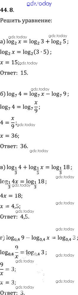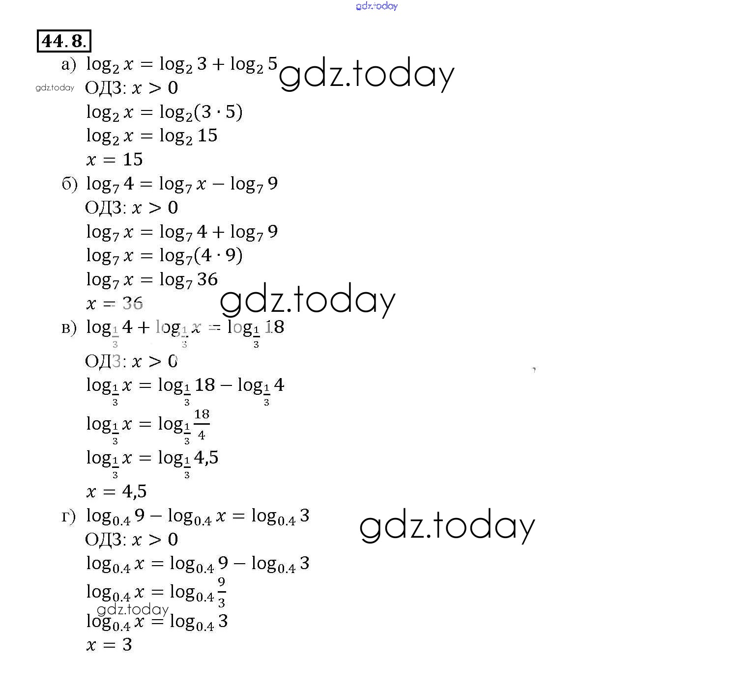 На страницах сайта gdz.today вы найдете учебный и вспомогательный материал, направленный на улучшения знаний школьной программы. ГДЗ - онлайн мир знаний §44. Логарифмические уравнения Глава 7 44. 8 Задачнику по Алгебре для 10-11 класса Мордкович, Денищева Базовый уровень Мнемозина 2015