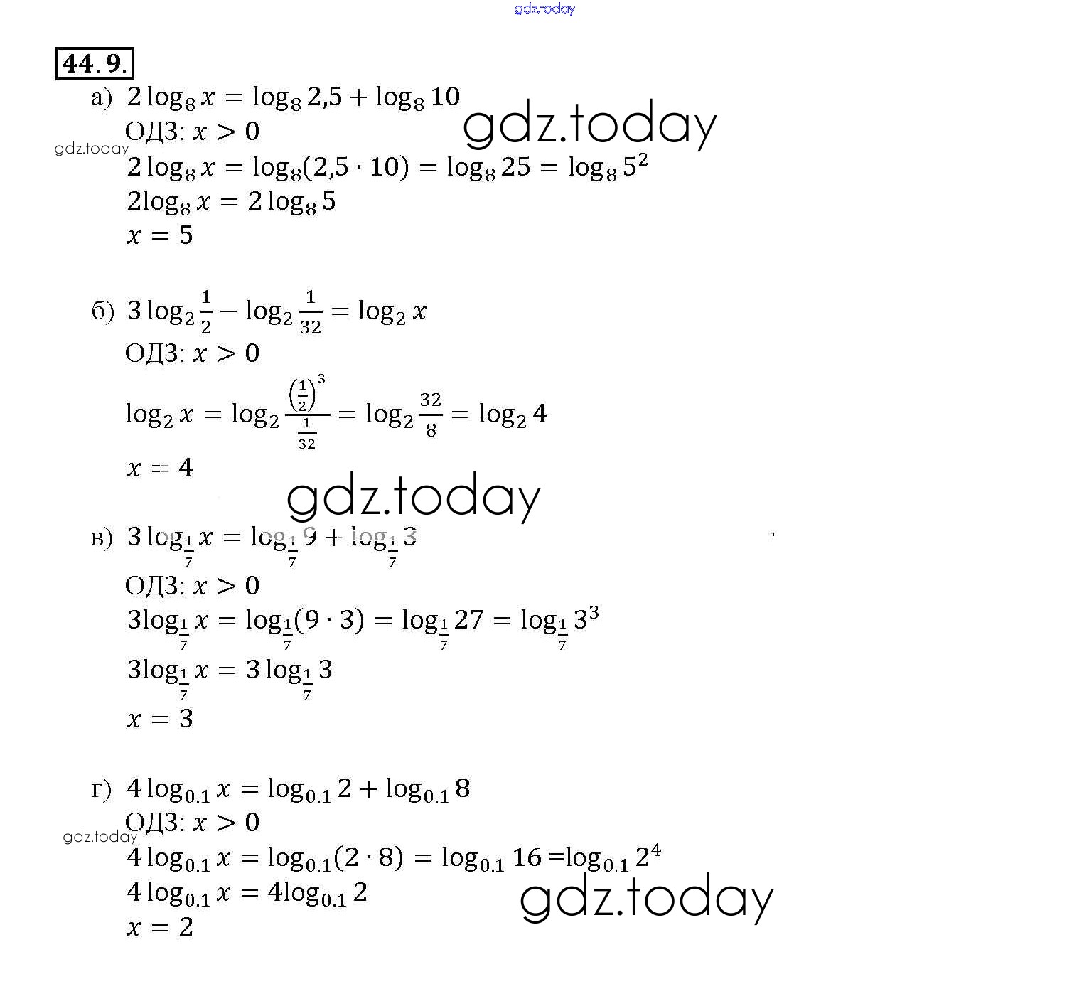 На страницах сайта gdz.today вы найдете учебный и вспомогательный материал, направленный на улучшения знаний школьной программы. ГДЗ - онлайн мир знаний §44. Логарифмические уравнения Глава 7 44. 9 Задачнику по Алгебре для 10-11 класса Мордкович, Денищева Базовый уровень Мнемозина 2015