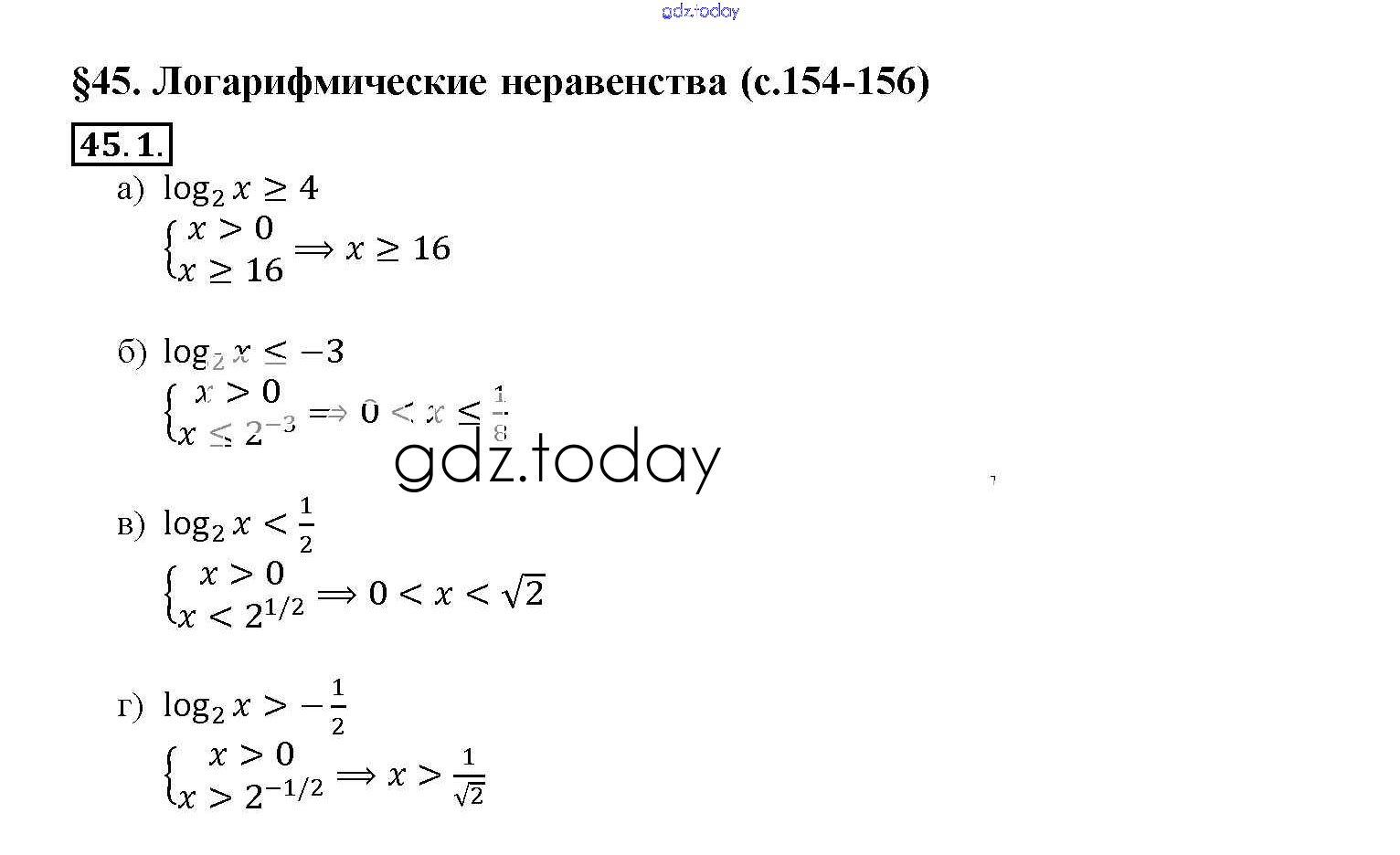 На страницах сайта gdz.today вы найдете учебный и вспомогательный материал, направленный на улучшения знаний школьной программы. ГДЗ - онлайн мир знаний §45. Логарифмические неравенства Глава 7 45. 1 Задачнику по Алгебре для 10-11 класса Мордкович, Денищева Базовый уровень Мнемозина 2015