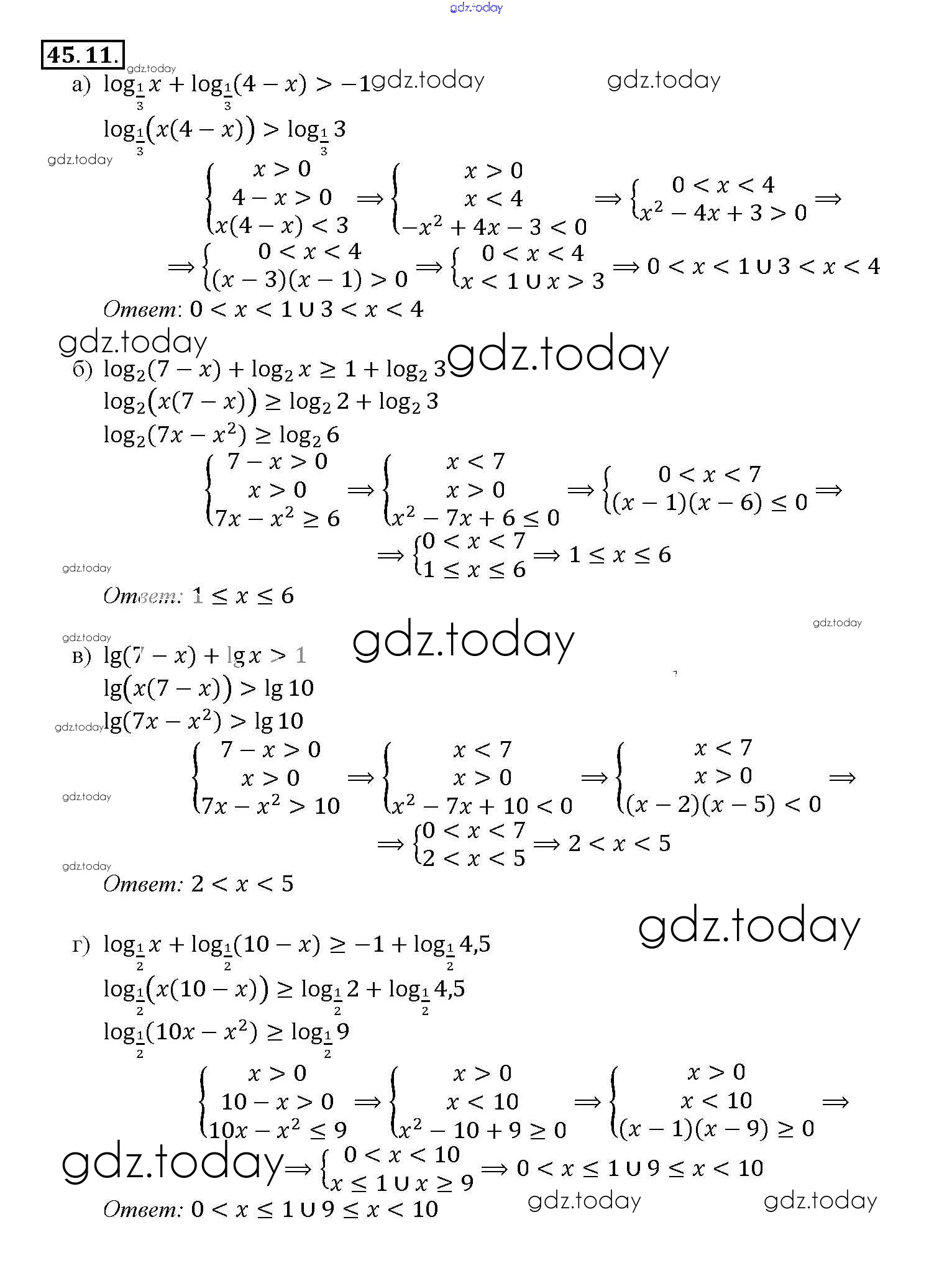 На страницах сайта gdz.today вы найдете учебный и вспомогательный материал, направленный на улучшения знаний школьной программы. ГДЗ - онлайн мир знаний §45. Логарифмические неравенства Глава 7 45. 11 Задачнику по Алгебре для 10-11 класса Мордкович, Денищева Базовый уровень Мнемозина 2015