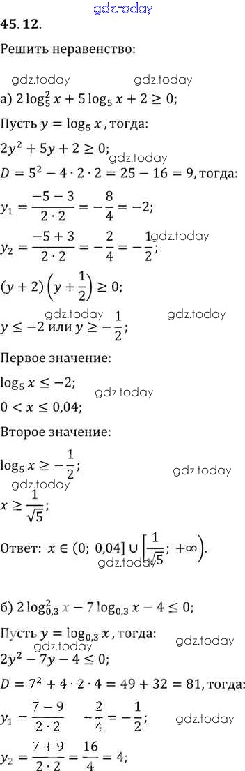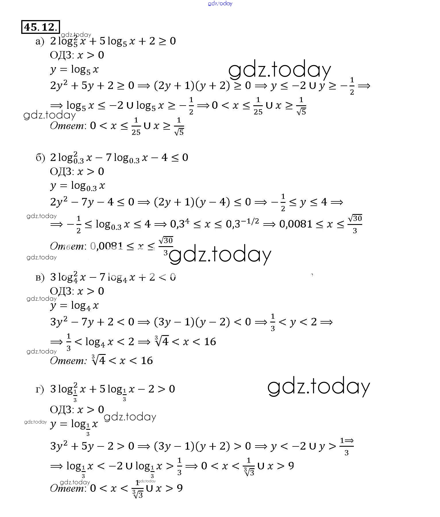 На страницах сайта gdz.today вы найдете учебный и вспомогательный материал, направленный на улучшения знаний школьной программы. ГДЗ - онлайн мир знаний §45. Логарифмические неравенства Глава 7 45. 12 Задачнику по Алгебре для 10-11 класса Мордкович, Денищева Базовый уровень Мнемозина 2015