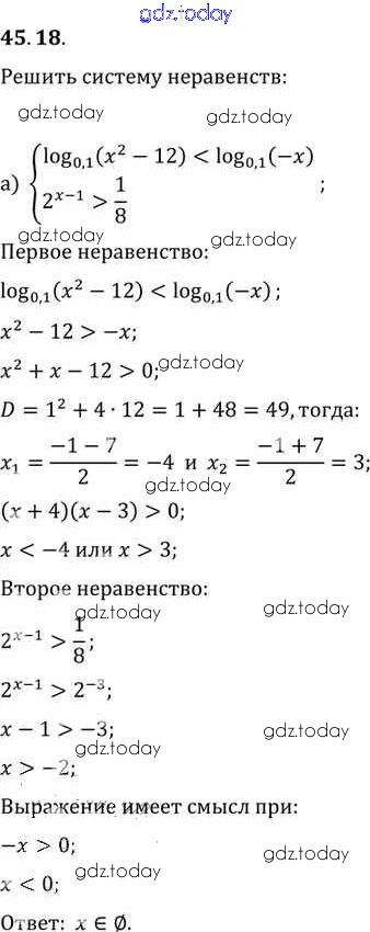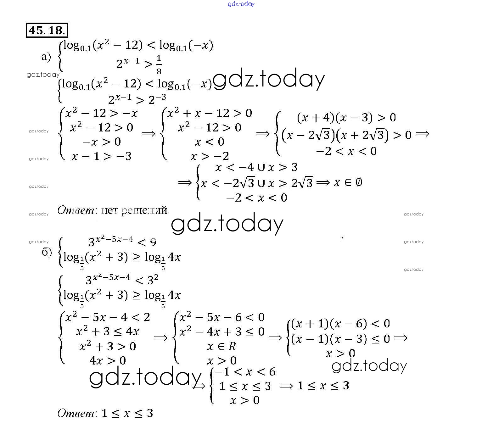 На страницах сайта gdz.today вы найдете учебный и вспомогательный материал, направленный на улучшения знаний школьной программы. ГДЗ - онлайн мир знаний §45. Логарифмические неравенства Глава 7 45. 18 Задачнику по Алгебре для 10-11 класса Мордкович, Денищева Базовый уровень Мнемозина 2015